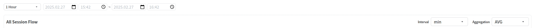 All Session Flow 페이지에서 Period Selector는 Chart Interval 기능이 추가되어있다. 공통 기능의 Period Selector는 조회 기간에 따라 Chart Interval이 동적으로 결정되지만 All Session Flow 페이지에서는 사용자가 Chart Interval을 지정할 수 있다.