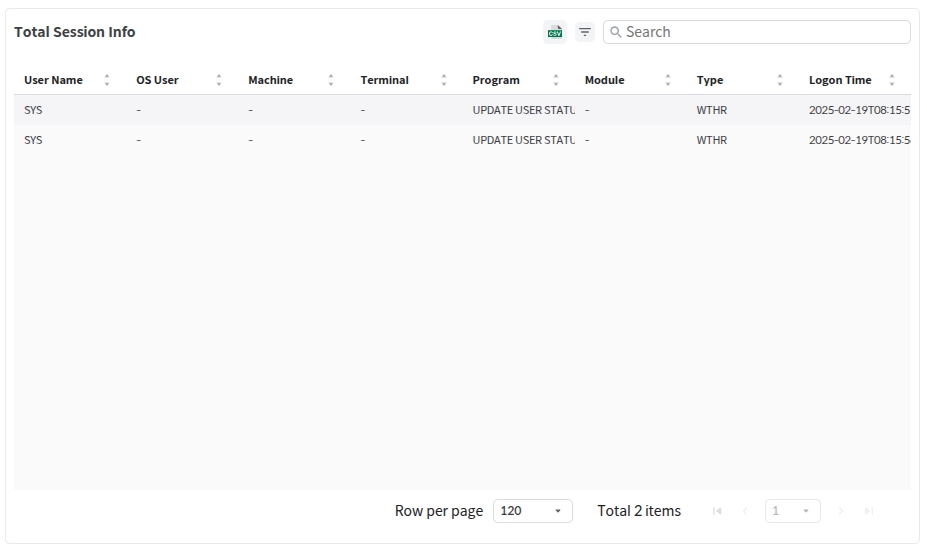 Total Session Info 화면에서는 All Session Count에서 선택한 세션의 정보를 확인할 수 있다.