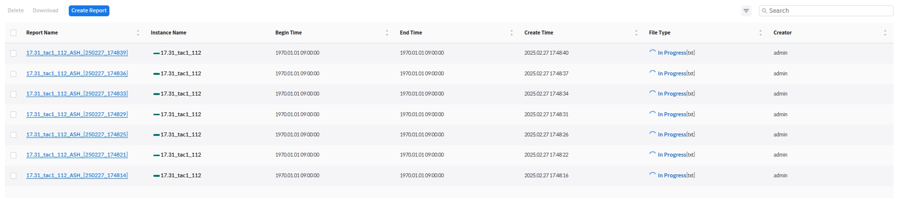 ASH Report는 사용자의 권한에 따라 특정 인스턴스 또는 클러스터 단위로 데이터베이스의 활성 세션(Active Session) 정보 분석 리포트를 생성 및 조회할 수 있는 기능이다.