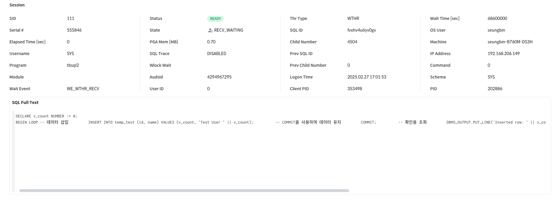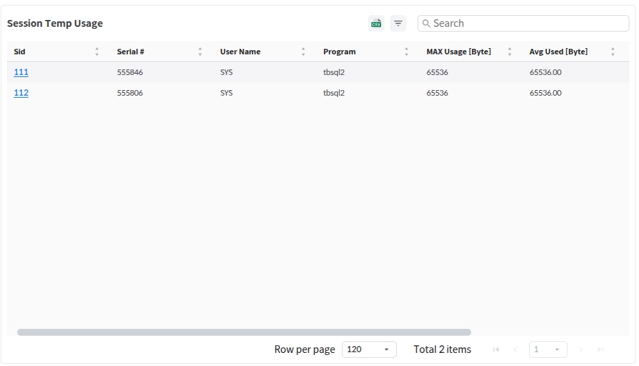 Session Temp Usage에서 Sid를 클릭하면 Temp Detail 페이지로 이동된다.