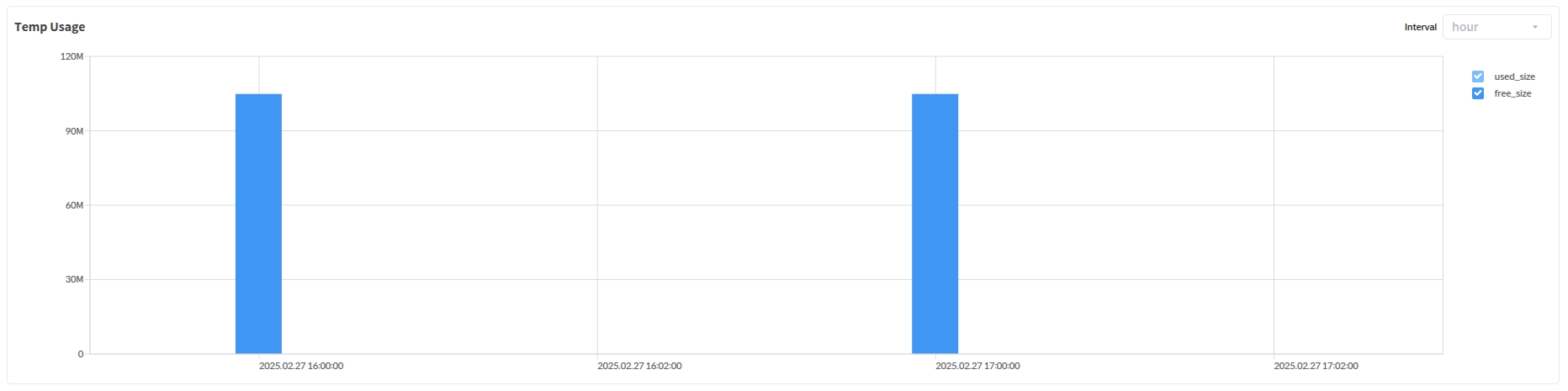 Temp Usage 에서 선택한 항목의 전체 Temp 사용량 정보를 상세하게 확인할 수 있다.
