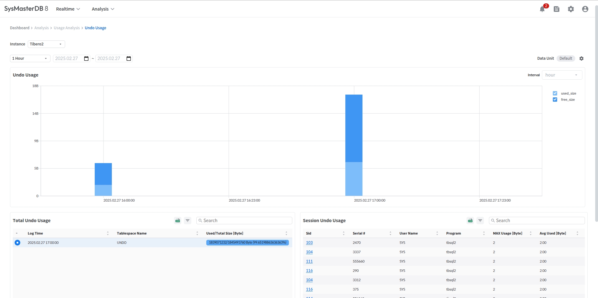 이 화면에서는 지정한 기간 동안 시간 단위의 Undo 크기의 변화량을 확인할 수 있다.