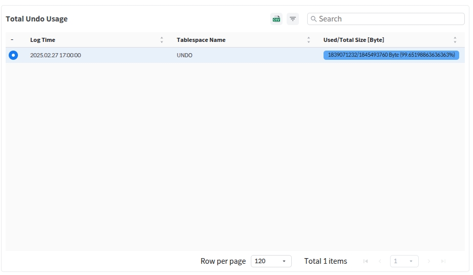 Undo Usage 에서 선택한 항목의 전체 Undo 사용량 정보를 상세하게 확인할 수 있다.