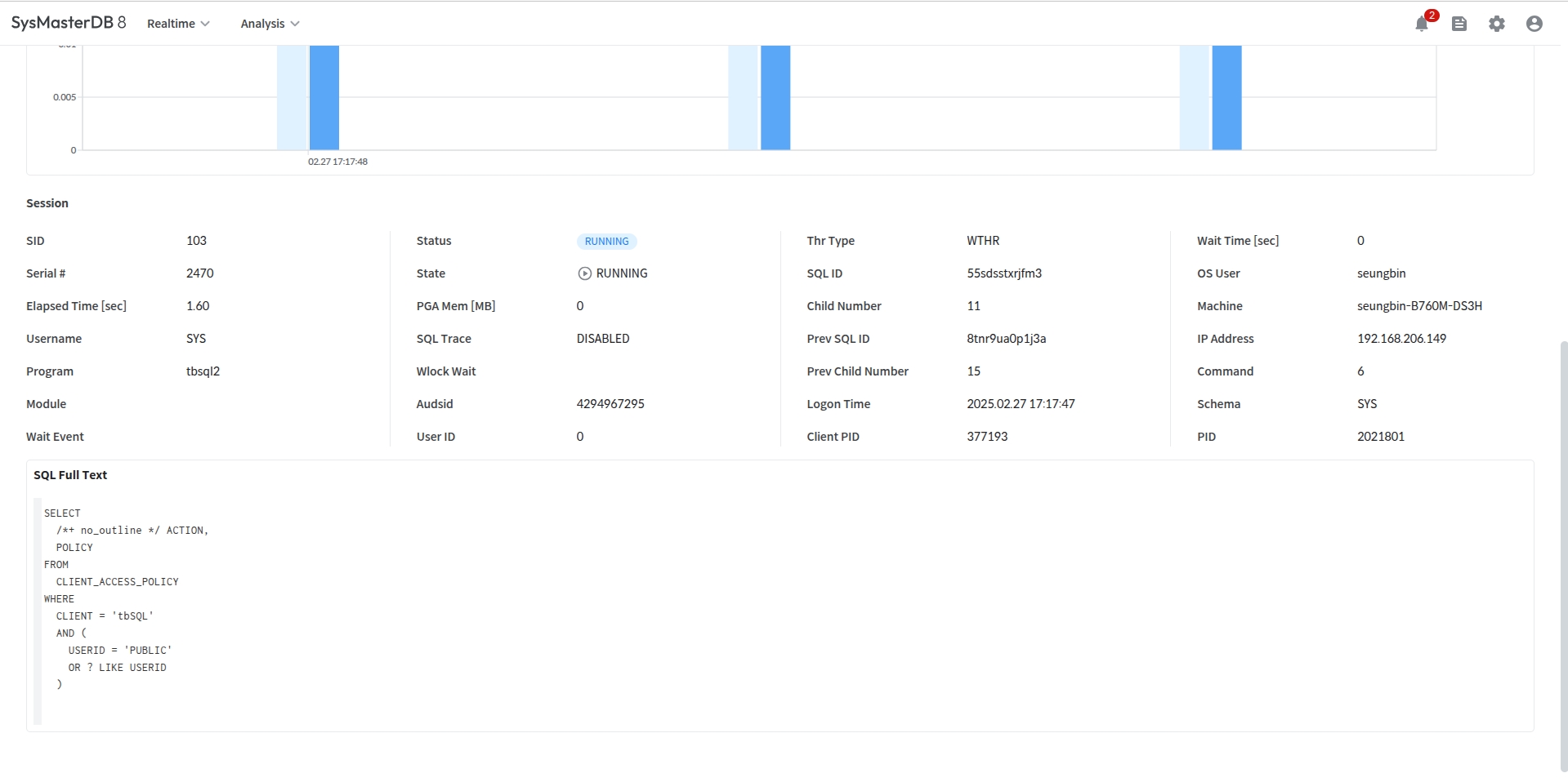 또한 하단에서 Session 정보도 같이 확인이 가능하다.