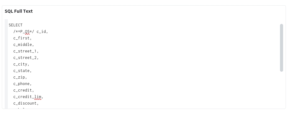 현재 session에서 수행 중인 SQL 전문을 보여준다.