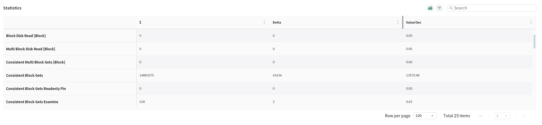 세션의 Statistics 지표별 새로고침 전, 후의 변경 값