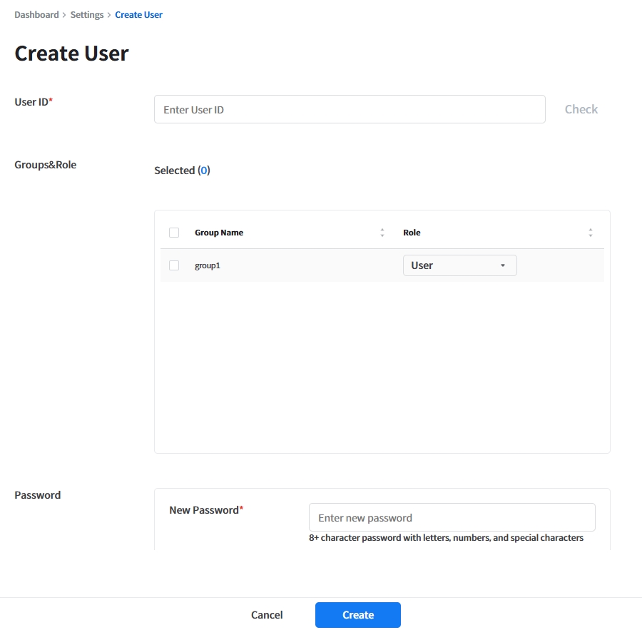 생성할 유저가 속할 그룹과 해당 그룹에서의 역할(Role)