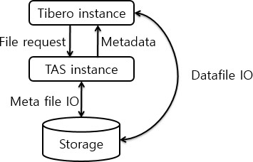 Tibero does not read and write a file by using TAS. Instead, it directly reads and writes to the disk by using the file's metadata, which is retrieved from TAS.